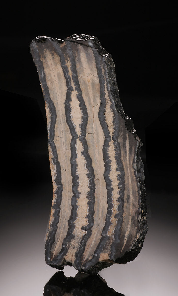 A wonderful example of a Mammoth tooth cross section at a smaller size and lower price point! The stark color contrast within the tooth gives it a fascinating appearance.