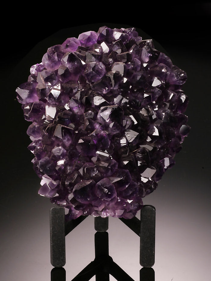 Amethyst is a variety of quartz which owes its coloration to the presence of iron in the area of its formation. The word Amethyst is derived from ancient Greek meaning "intoxication". It was believed by both ancient Romans and Greeks, if they wore Amethyst or made their goblets of the material, it would help prevent them from becoming intoxicated. Amethyst has been used in jewelry making for centuries. Spectacular, priceless carvings dating to the ancient Egyptians are displayed in museums. Amethyst is found in many places around the world. However, the most beautiful Amethyst, displaying deep rich purple crystals are mainly in South America.