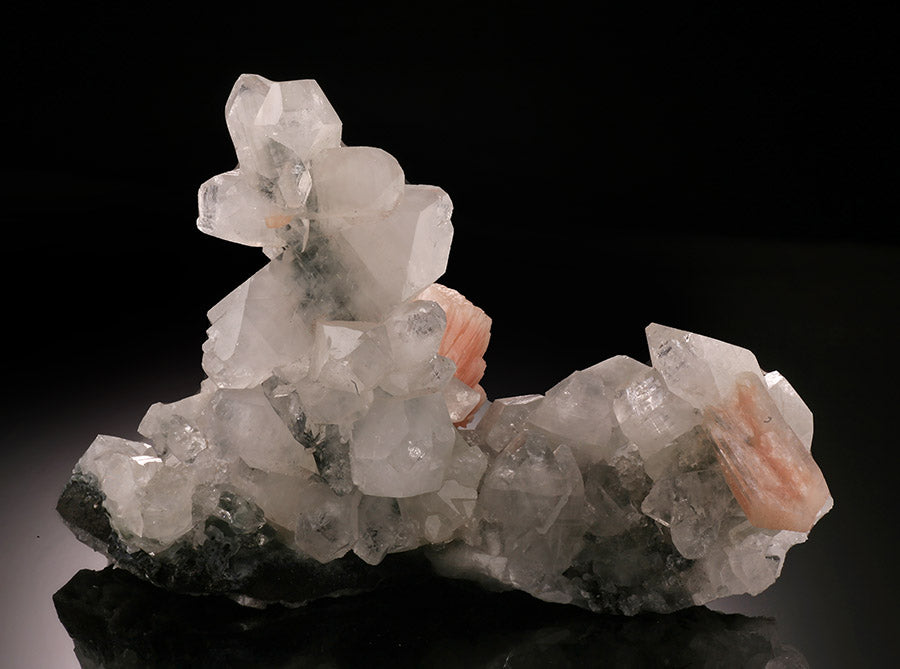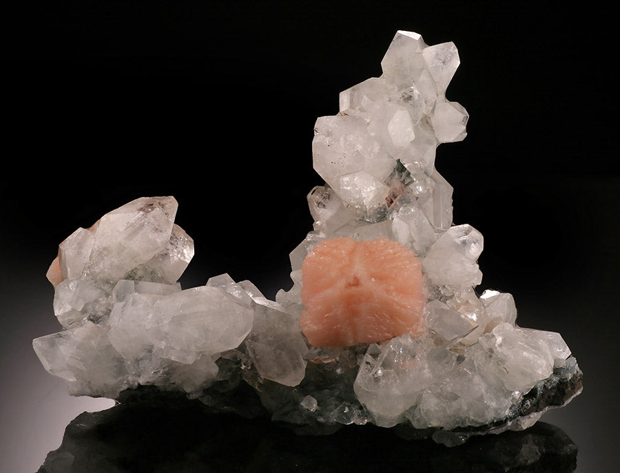 Apophyllite frequently occurs in zeolite minerals in basalt, and is less commonly found in pockets of granite. Green Apophyllite occurs most frequently in India where it is found nestled in Stilbite crystals. Colorless and green material from India is sometimes faceted as a collector's gem.