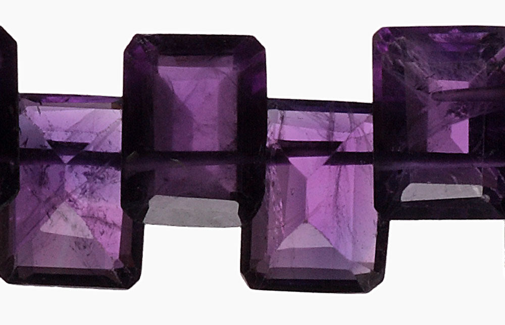 These Amethyst stones are facet cut and top drilled. They have an emerald cut table of 5x7mm. Each strand measures 8 inches in length.