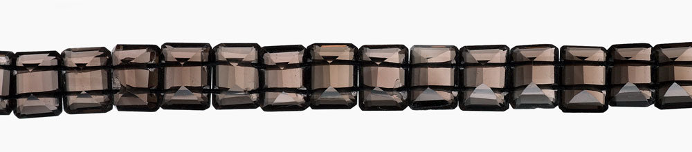 Each rectangular faceted Smokey Quartz has two horizontally drilled holes. Table size is 5x7mm and each strand measures 8 inches in length.