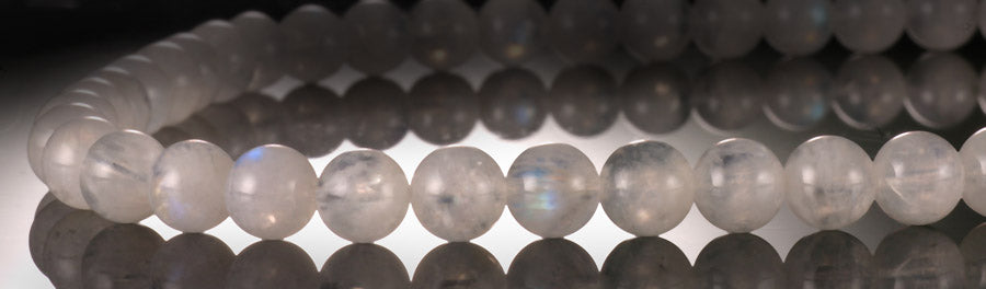 16" strand of polished round 6mm beads made of Rainbow Moonstone.