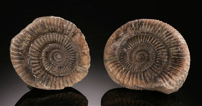 Ammonites are an extinct group of marine animals in the Cephalopoda class. They are invertebrates and are more closely related to coleoids (squids, octopus, and cuttlefish) than they were to the chambered nautilus, even though they looked much more similar to the later. The name Ammonite was derived from "ammonis cornua," translated to mean Horns of Ammon. Ammon was an Egyptian god that was typically depicted wearing ram horns, whose spiraled shape is similar to that of an Ammonite. Ammonites first appeared in the oceans during the Devonian Period, some 400 million years ago. They died out around 65.5 million years ago along with the dinosaurs.