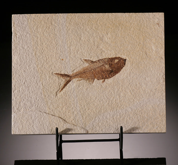 The Green River Formation in the USA covers an area over 25,000 square miles and is more than 2,000 feet thick. This formation, dates back more than 50 million years. It is one of the largest documented accumulations of sedimentary rock in the world. At the time, the area was sub-tropical and many different species flourished. Knightia lived in schools and were an abundant food source for larger predatory fish. Knightia are in the same family as herring and sardines.Diplomystus dentatus was one of those Green River fish and was related to today's herring. They were surface feeders, with their diet consisting of smaller fish, such as Knightia.