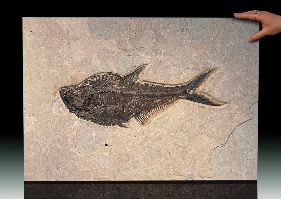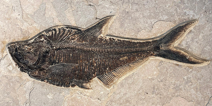 The Green River Formation in the USA covers an area over 25,000 square miles and is more than 2,000 feet thick. This formation, dates back more than 50 million years. It is one of the largest documented accumulations of sedimentary rock in the world. At the time, the area was sub-tropical and many different species flourished. Today, the majority of Fossil Fish taken out of this limestone formation are from two separate layers. "The 18" layer and the split fish layer". The 18" layer is composed of laminated sheets of limestone, allowing for fossil fish specimens to be extracted whole.