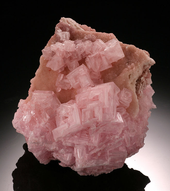 Halite refers to a rock primarily composed of sodium chloride- otherwise known as “rock salt”. The Halite that we typically carry is from Searles Lake, California. Searles lake is 5 times saltier than sea water! Pink Halite gets its color from halobacteria from the lake, and green Halite gets its color from the algae in the lake. Because Halite is water soluble, it must never be exposed to water or high humidity.
