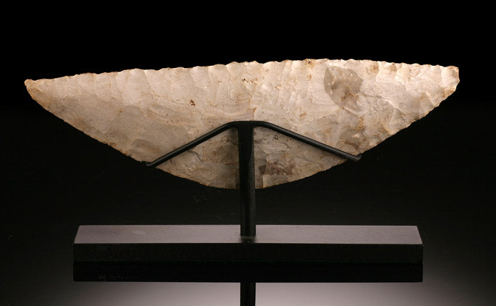 The Neolithic (Neo=new; Lithic=stone) era is also called the New Stone age, which began around 10,000 BC and ended between 4,500 and 2,000 BC. The Neolithic era varies in time span depending on geographic location. The Paleolithic era, which originates in the beginning of human life, continued until the Neolithic revolution. Whereas Paleolithic humans lived a nomadic lifestyle in small groups consisting of twenty to thirty people; Neolithic humans farmed in permanent settlements and raised/herded animals; agriculture was discovered and became a major source of food. The concept of private property and ownership emerged for things such as land, livestock and tools. Neolithic people were shorter and had lower life expectancy, Diseases like tooth cavities and typhoid emerged in the new stone age. Neolithic women had more children because the lifestyle was no longer nomadic. Stone tools were the norm, but began to be more sophisticated, specialized, and were often polished to a fine finish. Rocks with a high percentage of silicium dioxide (SiO2) were best suited for tools, as a sharp blow causes pieces to "flake" off, leaving sharp edges. Polished stone tools were made sharper by grinding the tool with another coarse abrasive rock to remove the chip scars either from the entire surface of around the working edges. At times the tools were also “polished”: a final grinding with a fine abrasive. Scientists consider the creation of all these tools a sign of early human ingenuity.