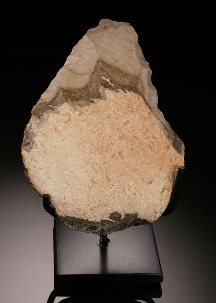 Flint handaxe showing bifacial stone working. Sold on a custom made metal stand.