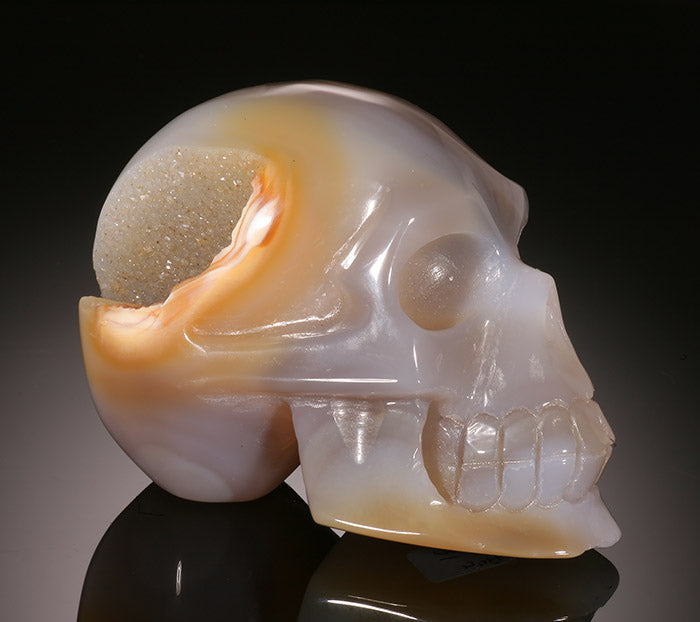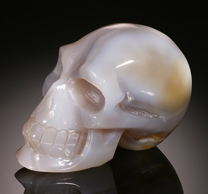 Agate is a form of Chalcedony, made up of 90% quartz and 10% morganite. It is composed of microscopically fine fibrous crystals, and it normally shows color banding, stripes, whirls, bull's eye and other random patterns due to impurities in the quartz. Igneous rock is formed by lava and volcanic activity. This activity can form pockets / bubbles in the rock, similarly to Swiss cheese. When these pockets are formed in an area close to water, the water which is filled with minerals, (primarily quartz), is forced into the pockets, forming a layer of gel which eventually eats away the igneous rock. Layer upon layer of this gel is created until the void is filled and the water dries out, allowing for complete crystallization. These pockets can be broken up over time, then washed into the waterways, where it can be naturally smoothed and polished. Sometimes it will remain intact, and a void will not fill completely, as in the case of an Agate Geode. Agates were first discovered along the river Achates, in Sicily, for which they are named.