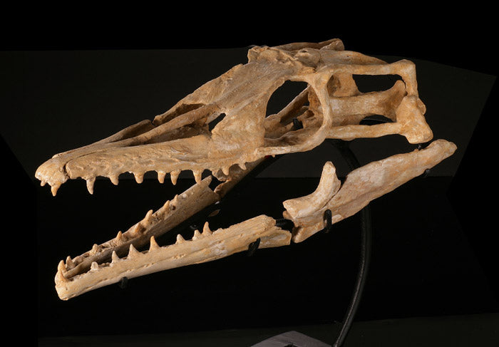 Mosasaurs were giant marine lizards, considered to be closely related to today's snakes and similar in shape to today's monitor lizard. They were incredibly strong swimmers with powerful double hinged jaws and a skull similar in design to a snake. That gave a Mosasaur the ability to devourer most of its prey practically whole. Mosasaurs lived during the Cretaceous Period, some 80 million years ago. The word "Mosasaur" means "Meuse Reptile". It was named because the first remains of a Mosasaur was discovered close to the Meuse River, near the town of Maastricht in the Netherlands, inside an underground limestone mine sometime between 1770 and 1774.