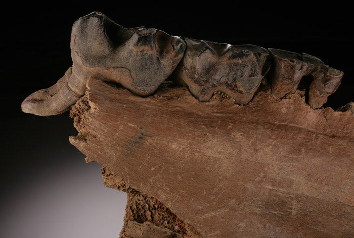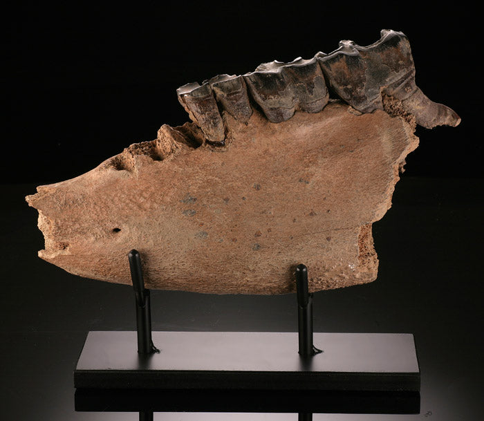 Wholly Rhino specimens are extremely rare. They are even rare in Europe. Many European Woolly Rhino specimens are normally discovered in and around gravel pits. However, most are unknowingly crushed along with gravel for construction purposes before anyone can retrieve them.
