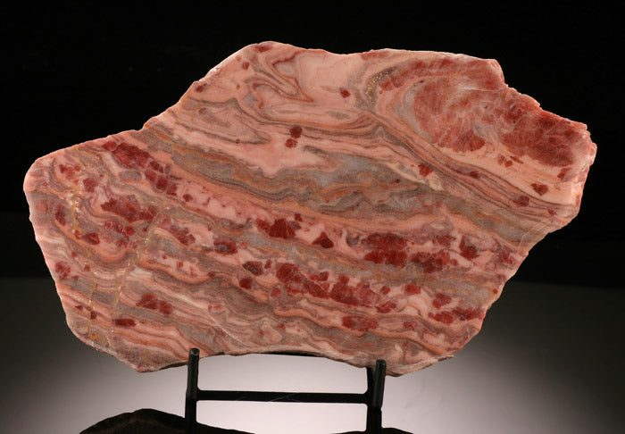 Kona Dolomite is an ancient rock made up of fossil stromatolite (1.2-2.2 billion years old). It is only found in the Kona Hills, south of Marquette County in Michigan, USA. Kona Dolomite is often pink with black and brown banding, although it can also come in red, orange, yellow, and neutral tones.