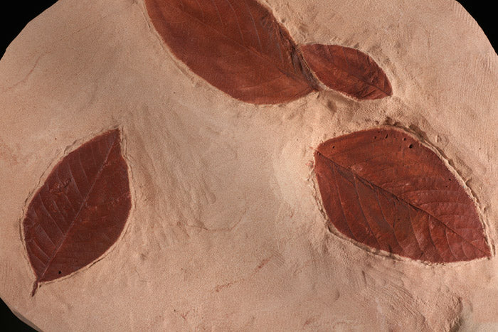 A beautiful arrangements of fossilized leaves that have been carefully carved from the matrix. The reddish tan tones are beautiful and warm, giving the entire plate an autumnal aesthetic. A gorgeous fossil for nature lovers!! Sold with stand.