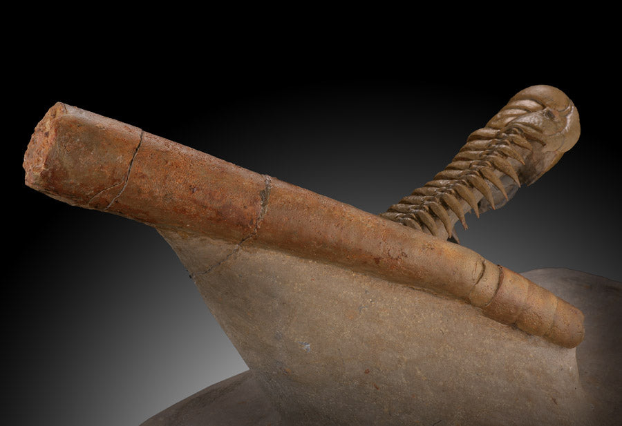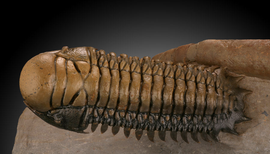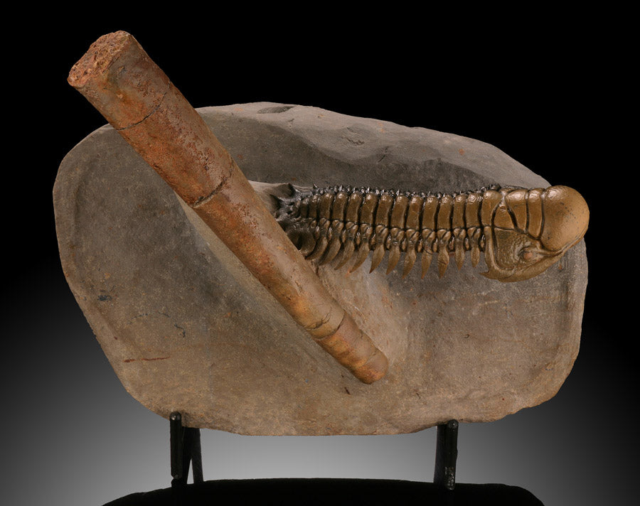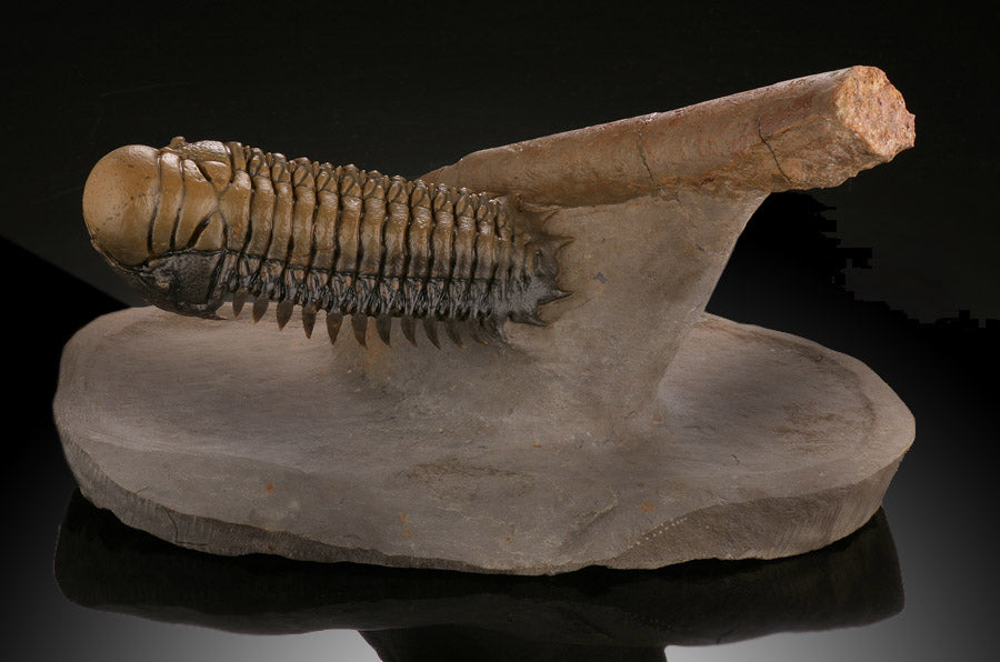 Trilobites are extinct hard shelled marine arthropods with amazingly great diversity. It is estimated there were over 15,000 known species of Trilobita, making them the most diverse animal life form that ever existed on earth. In Morocco, new Trilobite specimens are being discovered every year. Trilobites are are important as paleo-zoic guide fossils, having existed for over 270 million years. They began their existence during the early Cambrian time period (520 mya), long before dinosaurs existed but went extinct around 250 mya, before dinosaurs died out.