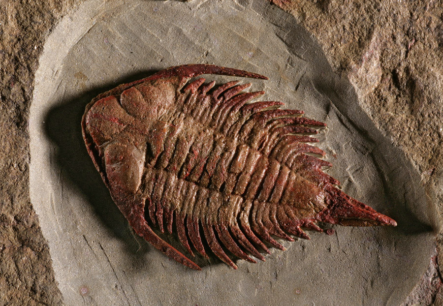 Trilobites are extinct hard shelled marine arthropods with amazingly great diversity. It is estimated there were over 15,000 known species of Trilobita, making them the most diverse animal life form that ever existed on earth. In Morocco, new Trilobite specimens are being discovered every year. Trilobites are are important as paleo-zoic guide fossils, having existed for over 270 million years. They began their existence during the early Cambrian time period (520 mya), long before dinosaurs existed but went extinct around 250 mya, before dinosaurs died out.