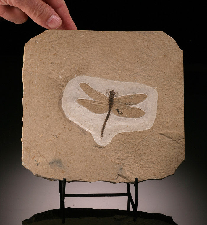 This is a dragonfly from the Crato Formation, which is located in northeastern Brazil. It is known for its well preserved and diverse marine fossils, including approximately 25 species of fossil fishes that are allowing paleontologists to study predator/prey relationships in the area. There have been examples of pterosaurs, reptiles, amphibians, invertebrates, and a new maniraptor dinosaur found in this area.