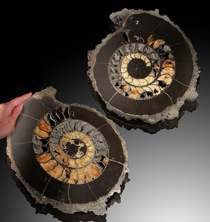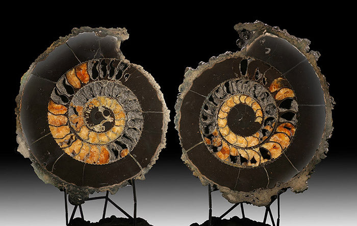 Ammonites are an extinct group of marine animals in the Cephalopoda class. They are invertebrates and are more closely related to coleoids (squids, octopus, and cuttlefish) than they were to the chambered nautilus, even though they looked much more similar to the later. The name Ammonite was derived from "ammonis cornua," translated to mean Horns of Ammon. Ammon was an Egyptian god that was typically depicted wearing ram horns, whose spiraled shape is similar to that of an Ammonite. Ammonites first appeared in the oceans during the Devonian Period, some 400 million years ago. They died out around 65.5 million years ago along with the dinosaurs.