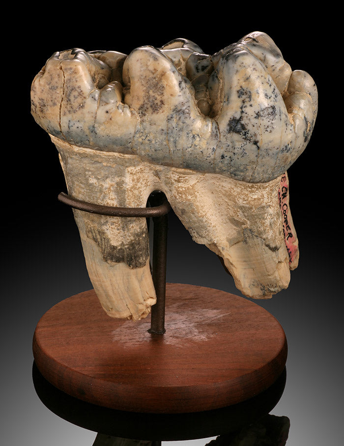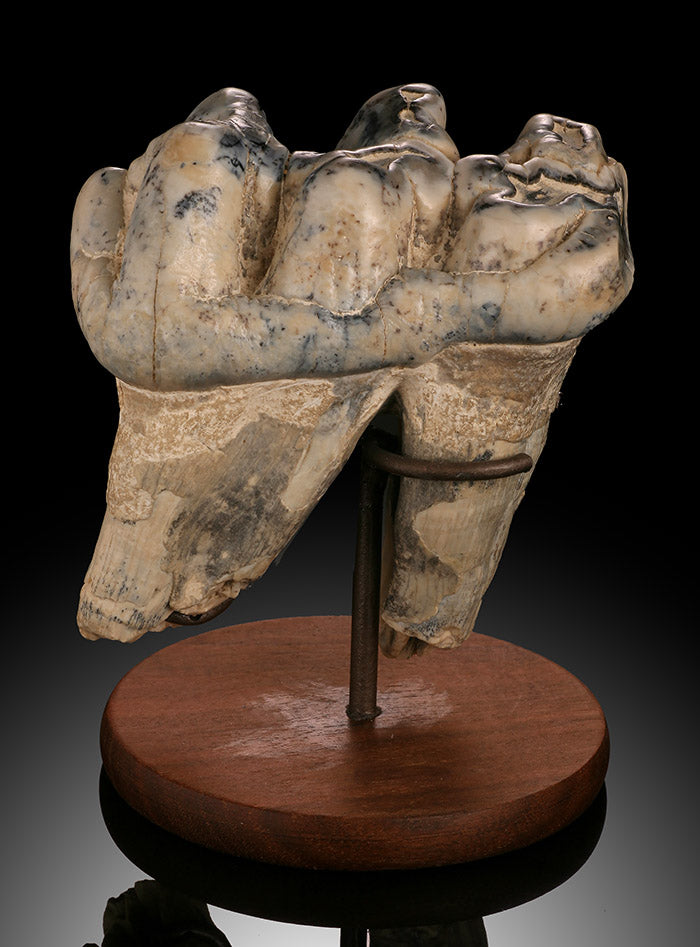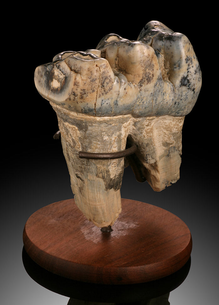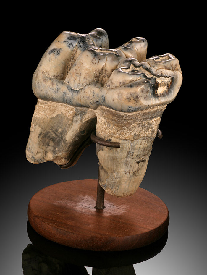 Similarly to Mammoth "and today's modern elephant", Mastodon went through several (6) sets of teeth. Its last set of teeth emerging when the animal was around 45 years of age and lasted until it's death. (~ 70 years old). It's last set of teeth eventually wore down to the point that the animal could no longer chew enough meals to sustain itself, thereby hastening the animal's death through starvation.