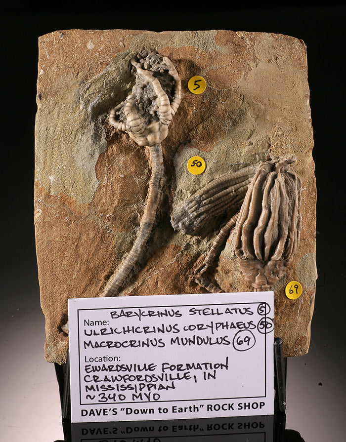 The crinoids include: Barycrinus Stellatus, Ulrichicrinus Coryphaeus, and Macrocrinus Mundulus