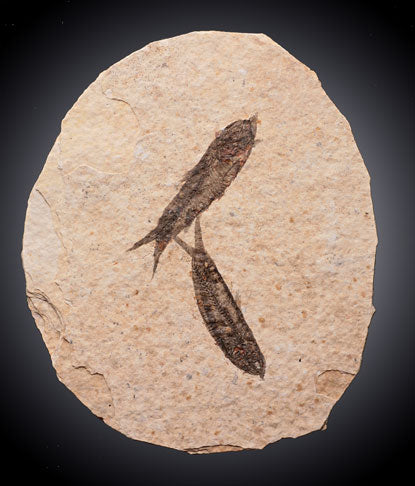 The Green River formation in the USA covers an area over 25,000 square miles and is more than 2,000 feet in thickness. This formation, dating back more than 50 million years, is one of the largest documented accumulations of sedimentary rock in the world. At the time, the area was sub-tropical and many different species flourished. This species lived in schools and were an abundant food source for larger predatory fish. Knightia is in the same family as herring and sardines.
