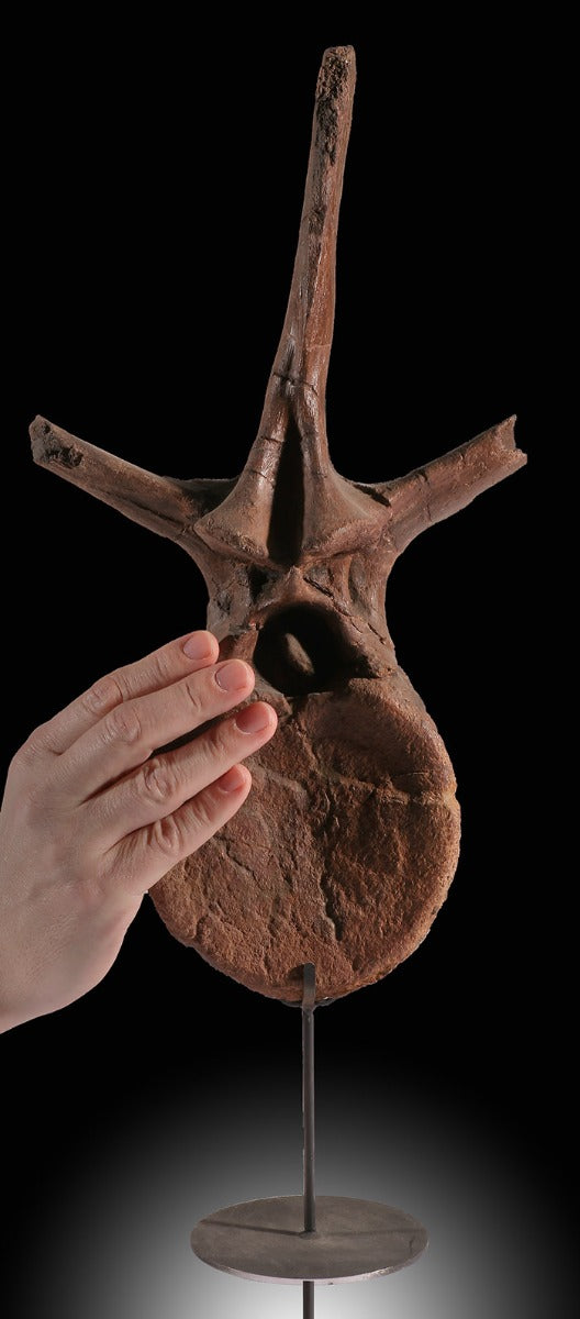 Edmontosaurus was a genus of Hadrosaurid "Duck Billed" dinosaur, a huge beast which roamed in herds across Western North America during the Cretaceous time period. At over 40 feet in length, Edmontosaurus was one of the largest dinosaurs. Its immense size was its natural defense against the carnivores during the time. Along with its massive size Edmontosaurus had an extremely long and heavy tail. The tendons in much of the Edmontosaurus back and tail were "ossified". This is a process where tendons transform from softer tissue into bone. Edmontosaurus needed this process to occur in order to help its muscles support its massive tail. Edmontosaurus had a unique hinge between the upper jaws and the rest of its skull, allowing it to push its upper jaw outwards and sideways while chewing, as the lower jaw slid against the hundreds of upper teeth it had in the back of its mouth.