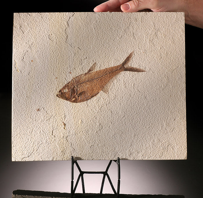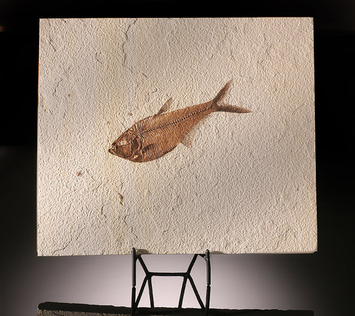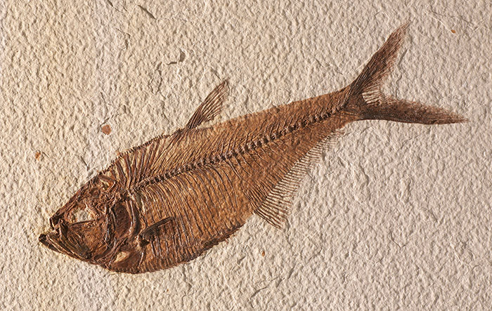 The Green River Formation in the USA covers an area over 25,000 square miles and is more than 2,000 feet thick. This formation, dates back more than 50 million years. It is one of the largest documented accumulations of sedimentary rock in the world. At the time, the area was sub-tropical and many different species flourished. Knightia lived in schools and were an abundant food source for larger predatory fish. Knightia are in the same family as herring and sardines.Diplomystus dentatus was one of those Green River fish and was related to today's herring. They were surface feeders, with their diet consisting of smaller fish, such as Knightia.