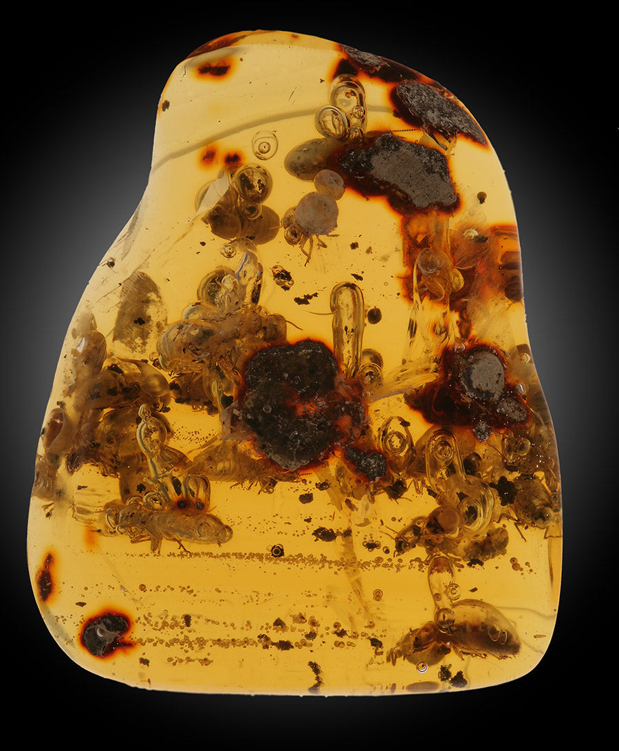 Amber is the fossilized resin of a variety of ancient species of coniferous and flowering trees. It is one of the few organic substances to qualify as a gemstone. Amber's color and opacity is determined by the type of tree that produces the resin, (as well as the density of microscopic air bubbles inside). Amber has the ability to preserve bits of forest debris from millions of years ago. Also, insects, small reptiles, plants and seeds, and even microorganism (like bacteria) are found in amber, and have been examined by scientists for more clues as to how our diverse planet evolved. Amber is used for many cosmetic purposes and in the medicinal field, such as in perfume, incense, skin care, baby teething and more. The oldest Amber recovered dates back to the Upper Carboniferous period, (about 320 million years ago), but most of the commercial Amber found was created by plants that did not evolve until the Jurassic or early Cretaceous periods, (about 20 to 180 million years ago).