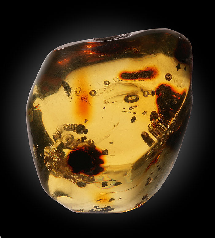 Beautiful polished amber with great coloration and clarity. The combination of air bubbles and organic matter captured within make it a mesmerizing specimen.