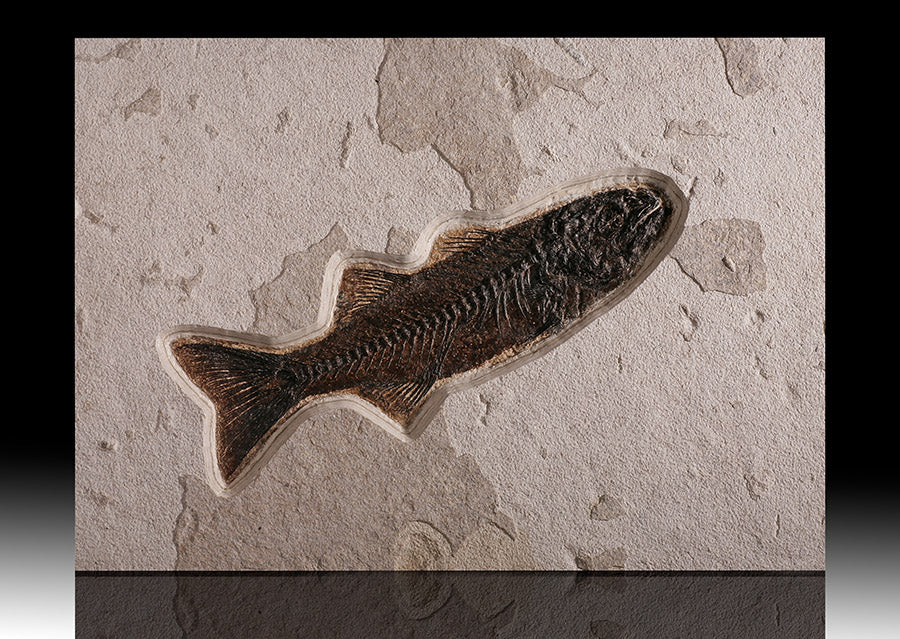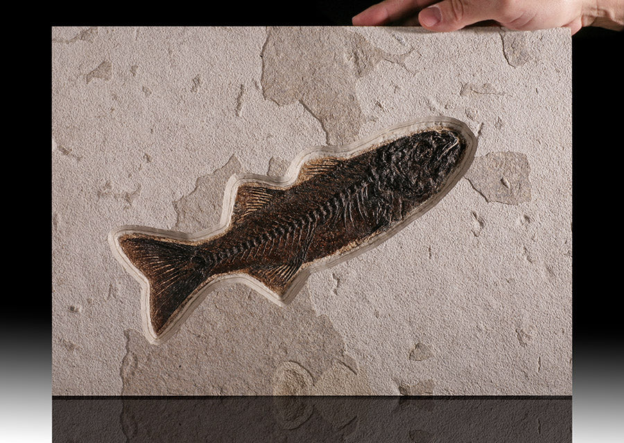 The Green River Formation in the USA covers an area over 25,000 square miles and is more than 2,000 feet thick. This formation, dates back more than 50 million years. It is one of the largest documented accumulations of sedimentary rock in the world. At the time, the area was sub-tropical and many different species flourished. Today, the majority of Fossil Fish taken out of this limestone formation are from two separate layers. "The 18" layer and the split fish layer". The 18" layer is composed of laminated sheets of limestone, allowing for fossil fish specimens to be extracted whole.