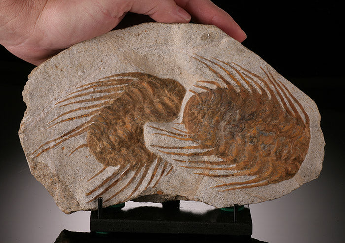 Trilobites are extinct hard shelled marine arthropods with amazingly great diversity. It is estimated there were over 15,000 known species of Trilobita, making them the most diverse animal life form that ever existed on earth. In Morocco, new Trilobite specimens are being discovered every year. Trilobites are are important as paleo-zoic guide fossils, having existed for over 270 million years. They began their existence during the early Cambrian time period (520 mya), long before dinosaurs existed but went extinct around 250 mya, before dinosaurs died out.