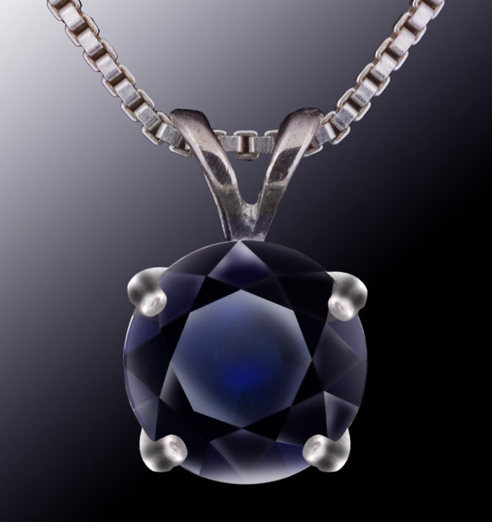 4mm round blue sapphire gem set in a sterling silver prong setting. Sold with 18" sterling silver box chain.