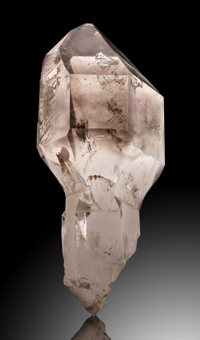 Scepter Quartz is a naturally occurring crystal formation where one crystal begins to grow around another central crystal "rod". Typically, the top crystal is larger/wider than the more narrow base crystal.