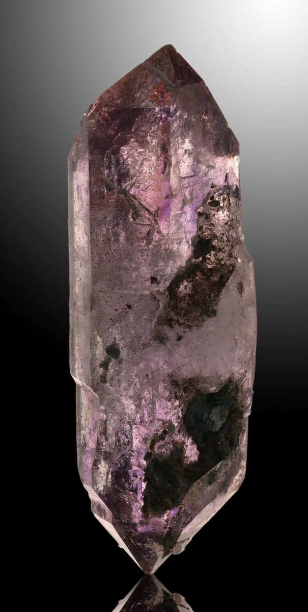 Brandberg Quartz are found only in the Goboboseb Mountains (more often known as Brandberg locality) in Namibia, Africa. These crystals have a combination of Amethyst, Clear Quartz and Smokey Quartz. This location is known for exceptional quality crystals with great clarity, and rare and interesting inclusions. Some inclusions that can be found in Brandberg Quartz can be; enhydros, phantoms, scepter formations, Lepidocrosite, and Hematite.