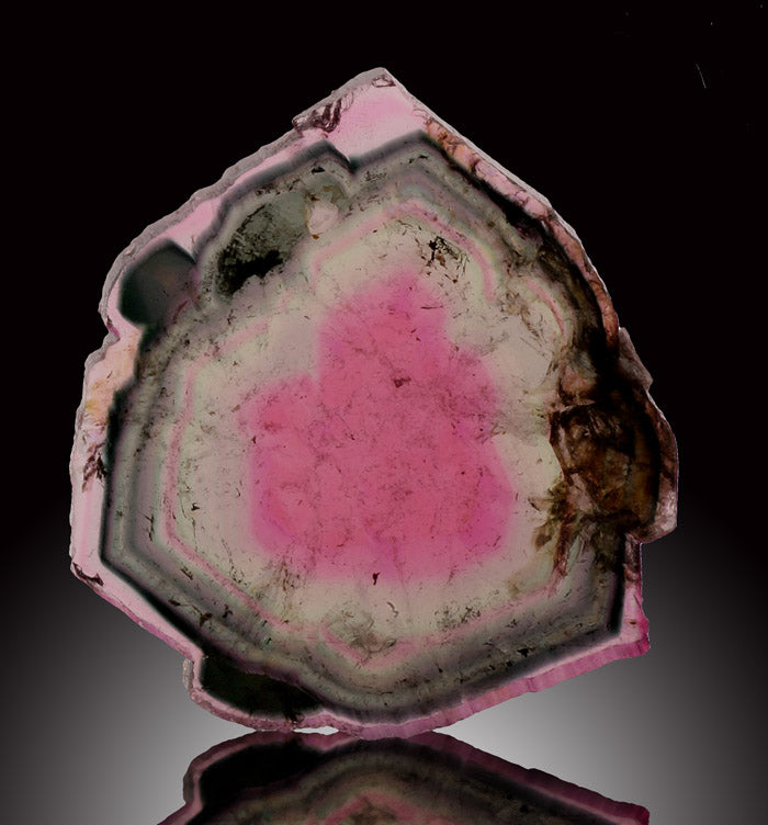 Elbaite, also known as Tourmaline, is a group of mixed crystals with the following major members, Elbaite, Dravite, Schorl, Buergerite, Tsilaisite, and Uvite. The general color range of the mineral's family are colorless, pink, green, blue, yellow, brown, and black. What distinguishes tourmalines are the three-sided cross sections that are different than any other mineral.