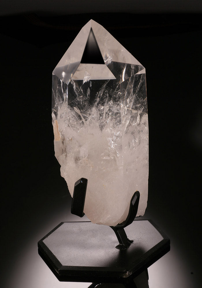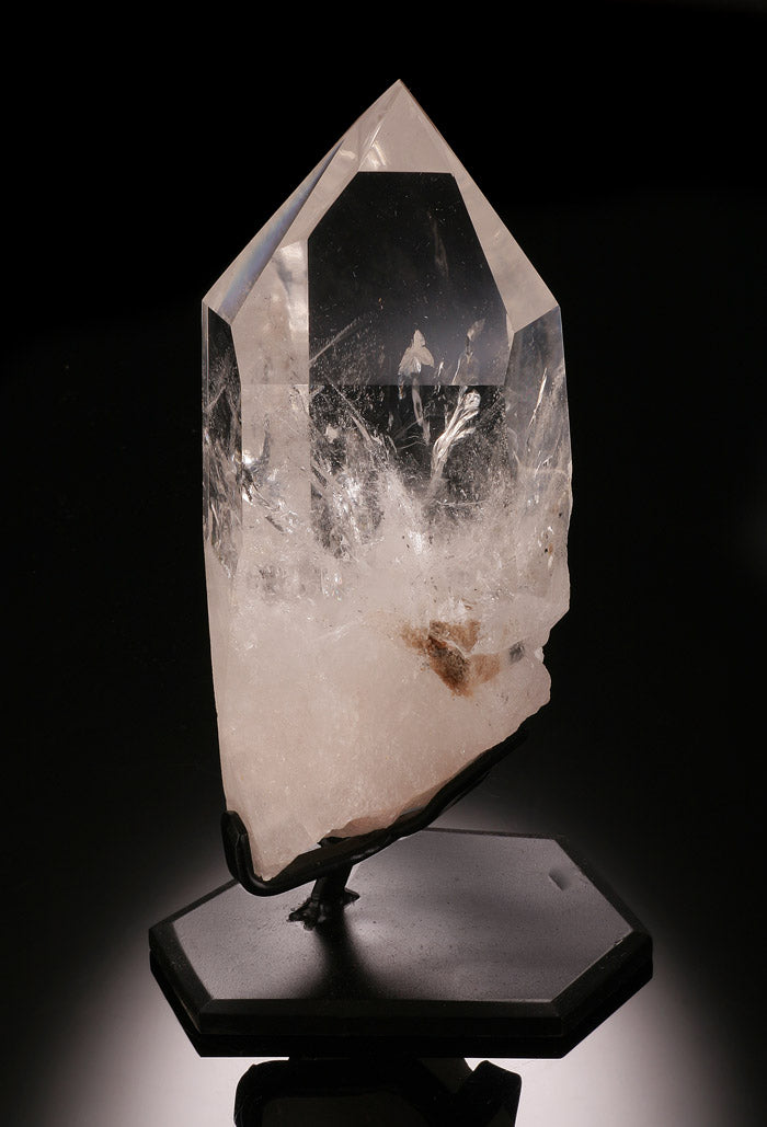 Clear Quartz is one one of the most admired minerals by both geology enthusiasts and those practicing the Metaphysical properties of minerals. Quartz is composed of silica (SiO2), and forms an important part of most igneous rocks. Quartz occurs in crystalline masses, and when conditions permit, it forms hexagonal crystals. Perfect crystals are rare. Industrially, crystal Quartz can be cut in a certain way in order for it to produce an electrical charge. This effect makes Quartz very useful for radio, television, and radar. Colors or inclusions in Quartz are due to the presence of other minerals (particularly iron), combining with Quartz during its formation. Common varieties are rose quartz, amethyst, citrine, rutilated, and tourmalinated quartz.