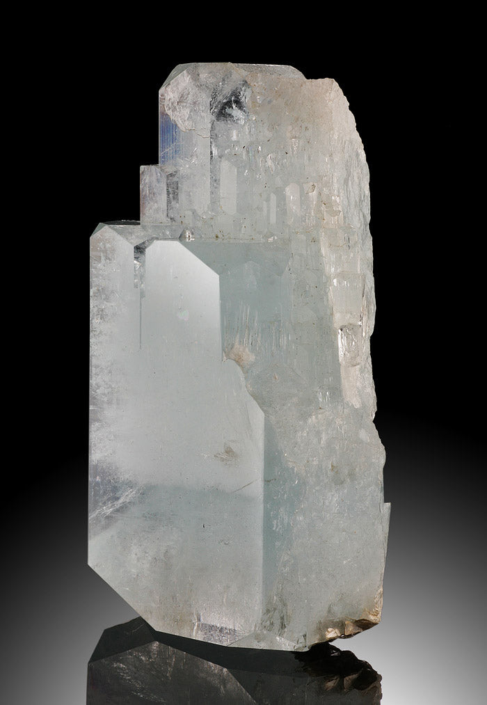 Aquamarine is a light blue variety of beryl with hints of green. The blue color comes from the presence of ferrous iron, and without it or another impurity, beryl would be clear. Other noteworthy types of beryl include emerald, heliodor, and morganite. The name Aquamarine translates as you might expect, aqua marina meaning "water of the sea" in Latin. It is a highly sought-after mineral that is most often cut and faceted to use as a gemstone in jewelry.