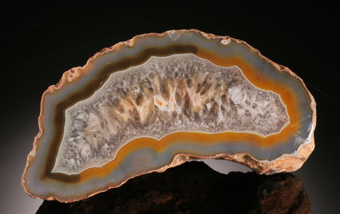 Named for the Condor birds that were flying overhead during their discovery, Condor Agates with their brilliant colors are among the most highly collectable Agate geodes to collectors. Mining these Agate specimens is extremely difficult as they are found only in the mountaintops of Argentina, at an altitude of over 6000 ft., and at a mine which is accessible only by horseback. Condor Agates were discovered by actor Luis de Los Santos in 1993.