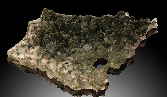 Epidote is a green/dark brown gemstone that is abundant and typically found as an inclusion in other stones. It was named in 1801 by Rene Just Haüy, after the Greek word that means “increase” due to the appearance of one side of the crystal being longer at the base of the prism.