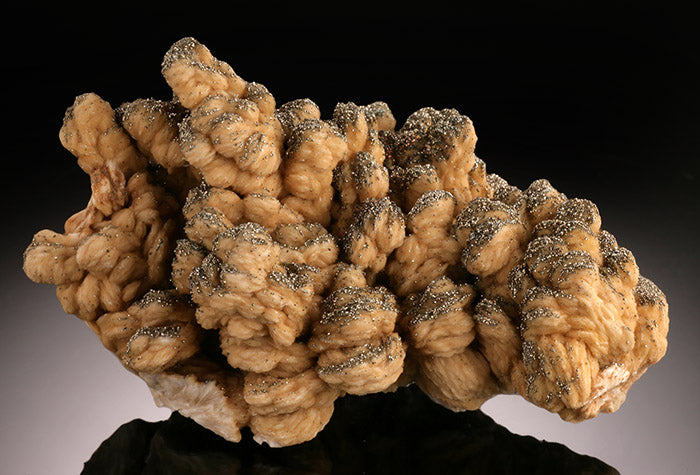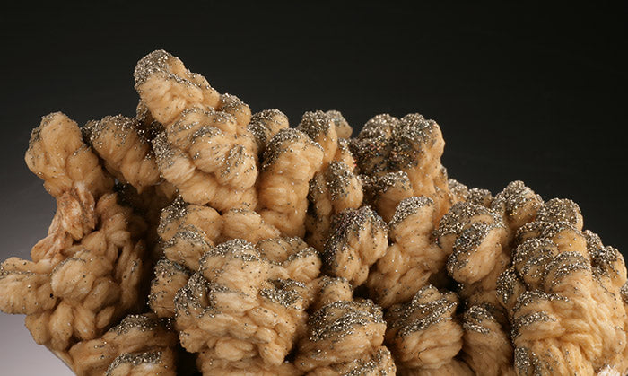 Barite and Marcasite specimens are collected from the Lubin Mine in Poland. Barite colors range from brown to white/beige depending on conditions and composition of minerals present during formation. Marcasite is silver-gold colored and upon closer inspection shows crystaline terminations.