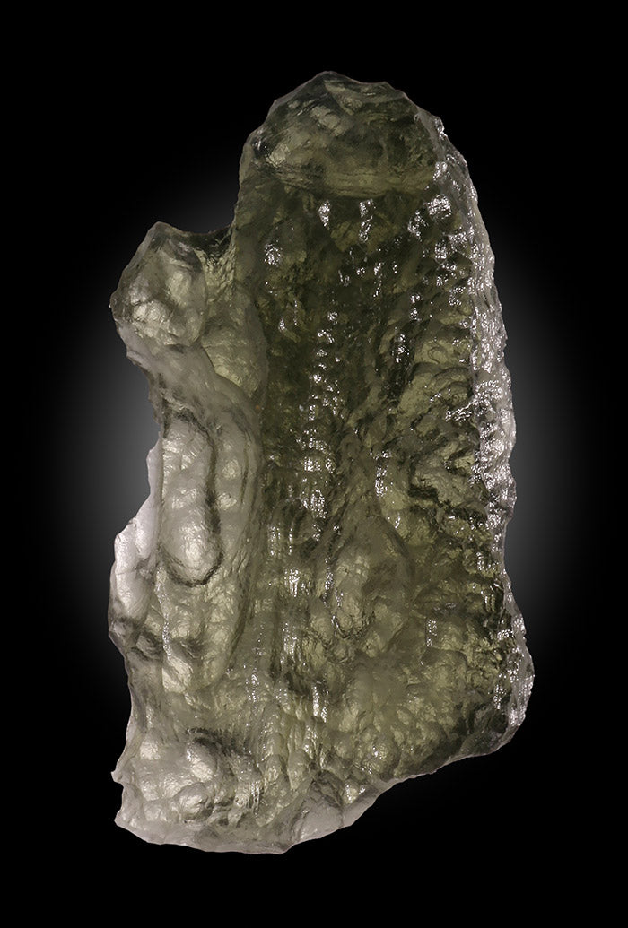 Moldavite is a unique type of Tektite, which are a natural variety of glass formed by meteorite impact. The meteorite's super-heated mass strikes the ground with such force that it can melt silicate material from the earth's surface. This material is then catapulted into the air where it cools and lands many miles away from the impact site in the form of a Tektite.