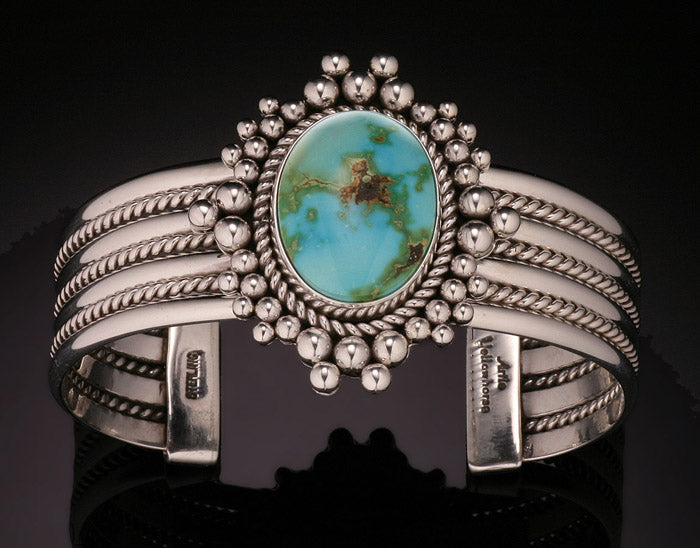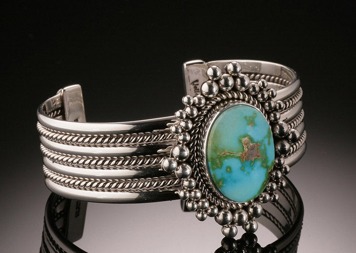 Artie Yellowhorse is a third generation Navajo artist who comes from a family of silversmiths and weavers. She is known for contemporary designs, high-quality stones, and fine metalwork.