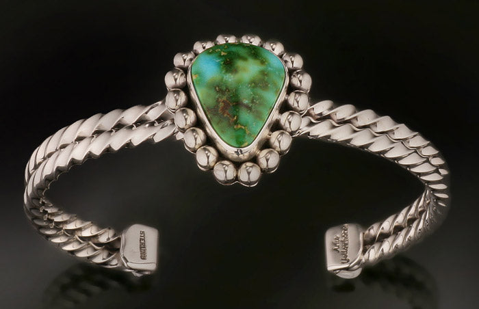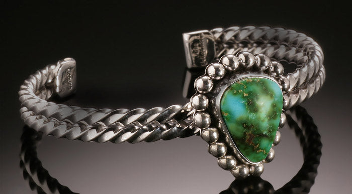 Artie Yellowhorse is a third generation Navajo artist who comes from a family of silversmiths and weavers. She is known for contemporary designs, high-quality stones, and fine metalwork.