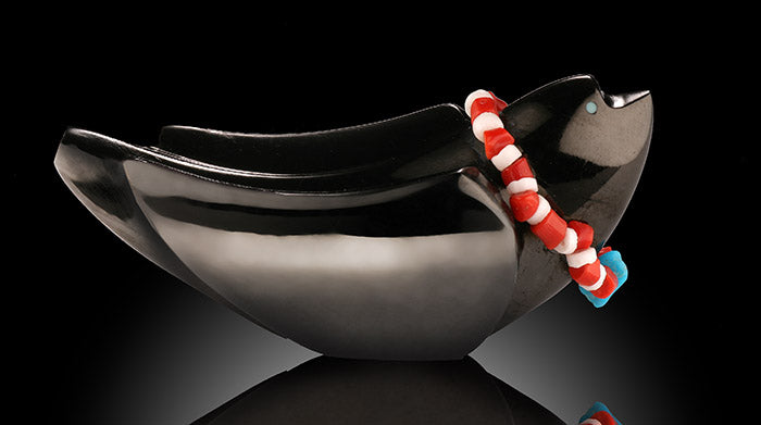 Prized for their beauty and spiritual renewal, fetishes have long been an important part of Native American Culture. When a Fetish maker prays over his created work, a mystical power is believed to become released, assisting a person in finding a solution to their present problems. All Southwestern tribes make and use fetishes; however, the Zuni people have developed a reputation for being skillful carvers. Among the Zunis, fetishes offer good luck, protection, and hunting guidance from the inner spirit of each carved animal.