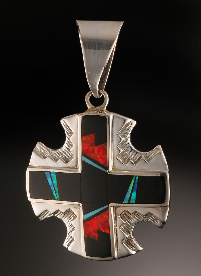 Zuni jewelry makers are renowned for their mastery in both lapidary (stone cutting) and silversmithing skills. They are known for creating intricate inlaid jewelry pieces, setting the hand cut pieces next to each other, creating unique patterns. Many times, a Zuni artist will work strictly with Turquoise. However, it is not uncommon to find highly intricate works of art, created from coral, lapis, onyx, spiny oyster, and / or a variety of other stones. The pueblo of Zuni Native American Indians is located in western New Mexico (south of Gallup) near the Arizona border. Jewelry-making is the major craft industry of the village. Like other Pueblo peoples, Zuni Indian artisans possess a true talent for lapidary work.