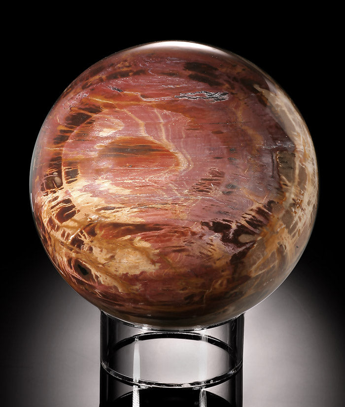 Petrified wood sphere with a high polish and fascinating color and pattern. Sold with an acrylic stand.