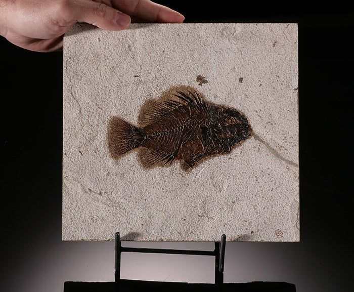 The Green River Formation in the USA covers an area over 25,000 square miles and is more than 2,000 feet thick. This formation, dates back more than 50 million years. It is one of the largest documented accumulations of sedimentary rock in the world. At the time, the area was sub-tropical and many different species flourished. Today, the majority of Fossil Fish taken out of this limestone formation are from two separate layers. "The 18" layer and the split fish layer". The 18" layer is composed of laminated sheets of limestone, allowing for fossil fish specimens to be extracted whole.