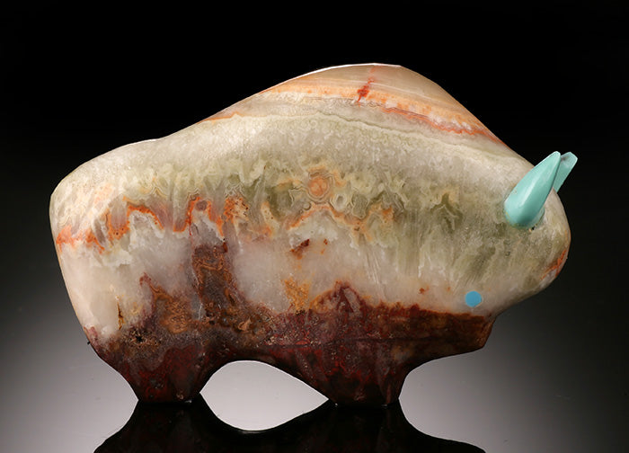 Banded onyx bison with turquoise accents.